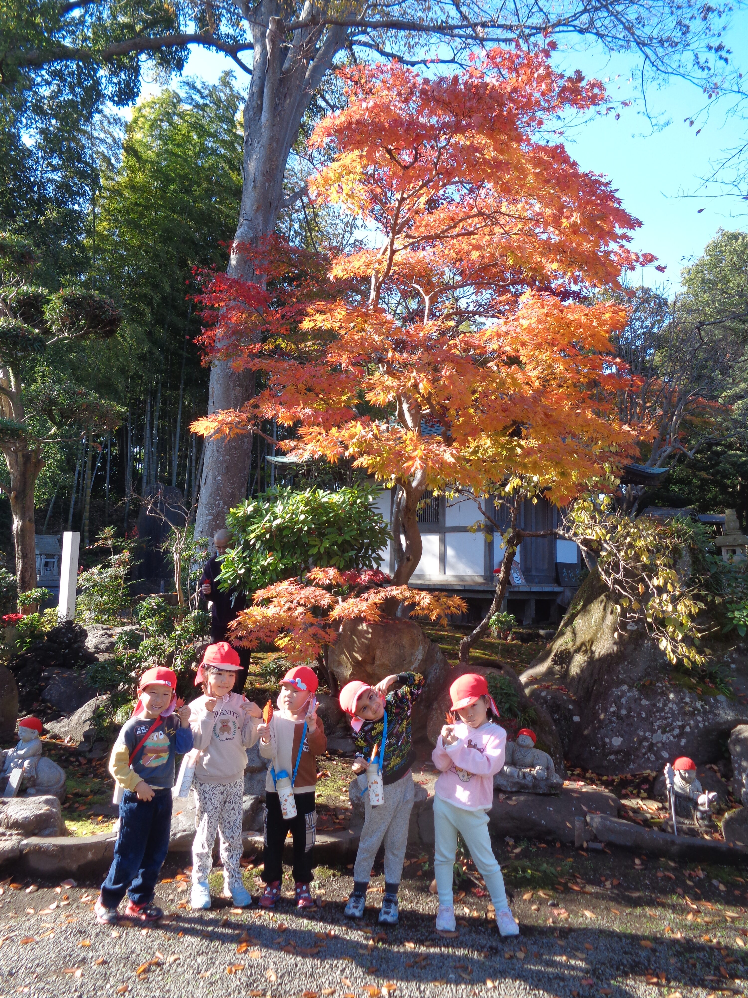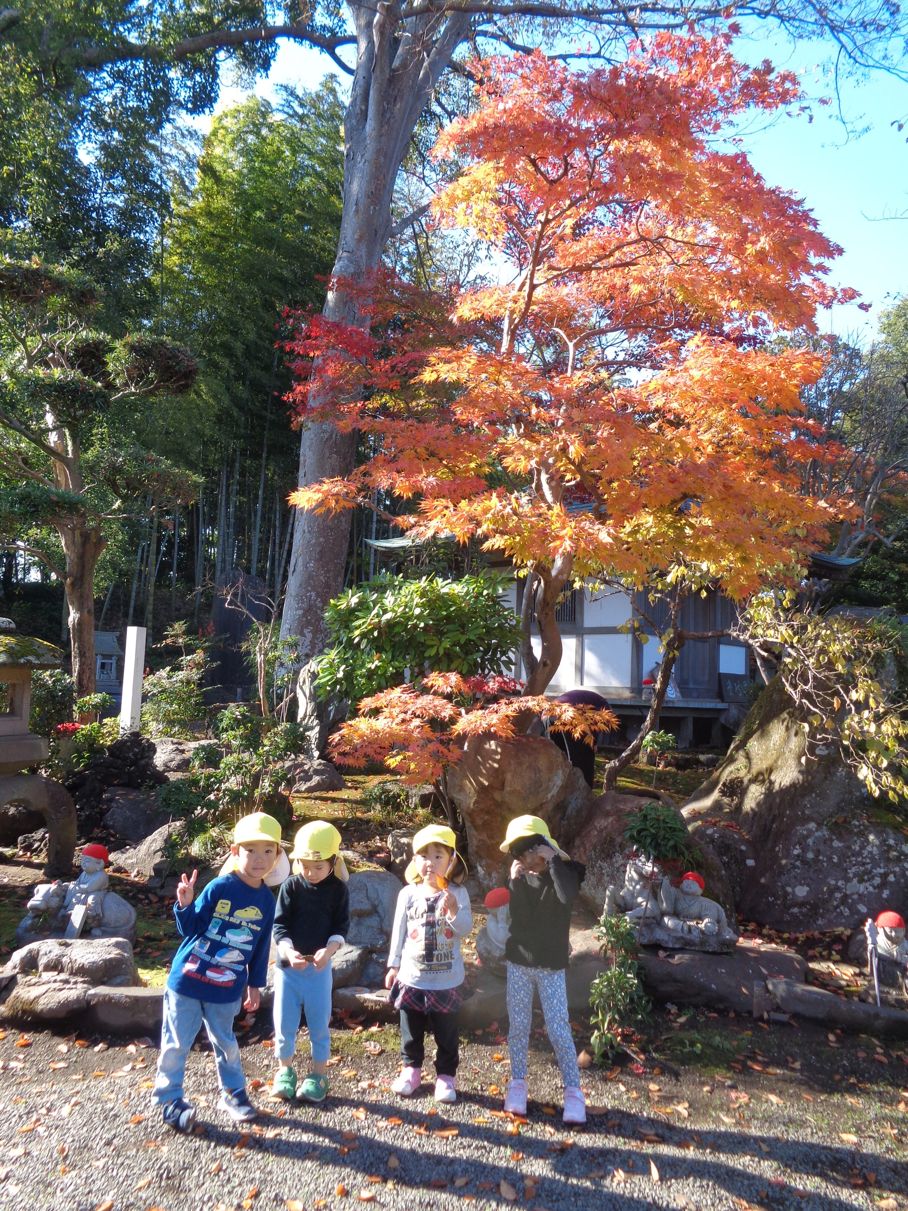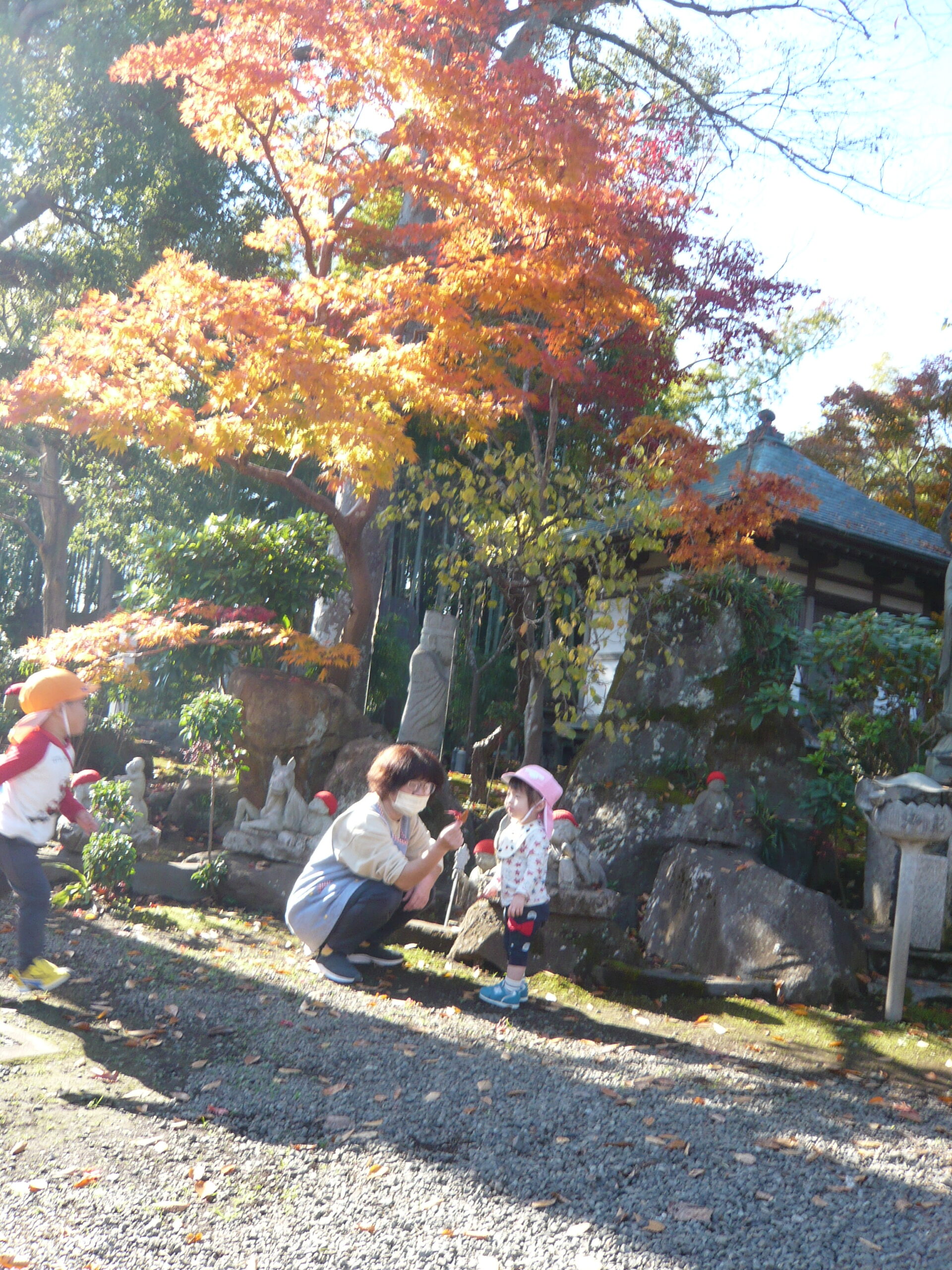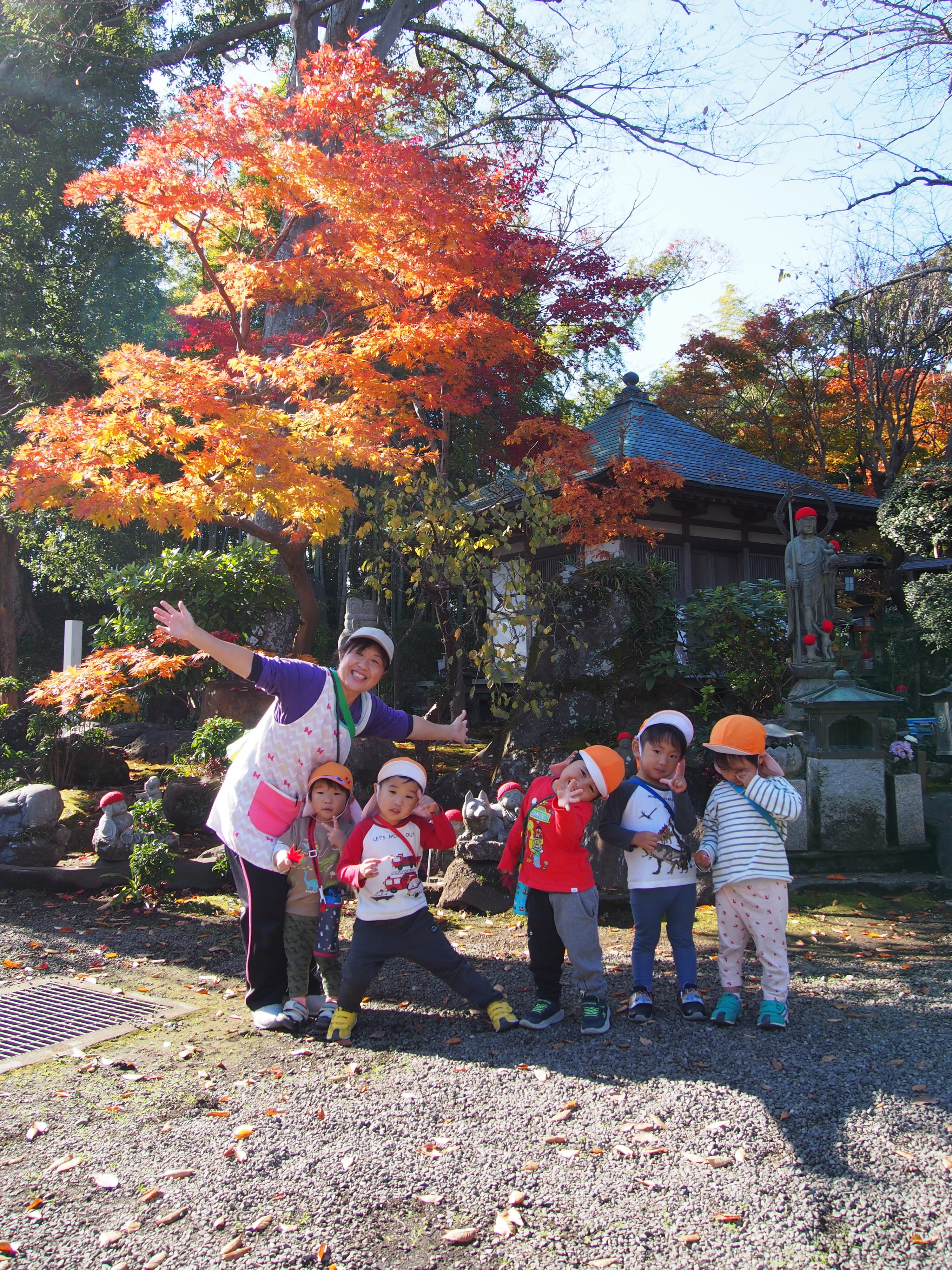 紅葉の絨毯で真っ赤に染まった境内をみんなで駆け回り、